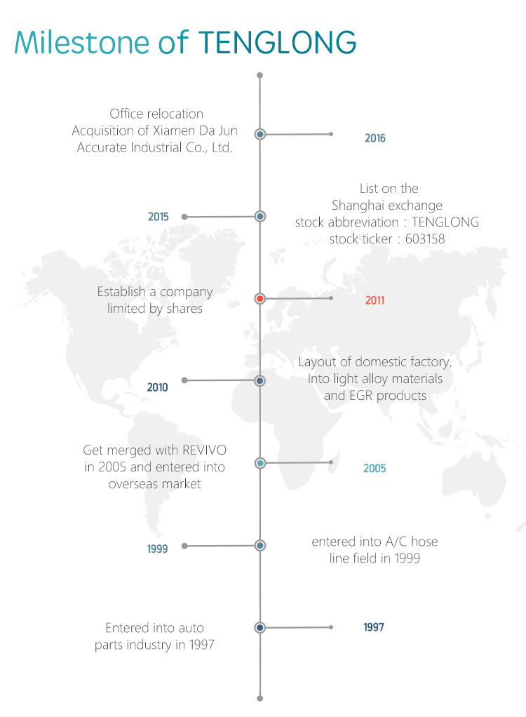 Changzhou Tenglong Auto Parts Co., Ltd.(TENGLONG) is a well-known enterprise in the industry providing services of auto parts R&D, manufacturing, and sales. We are engaging in the development and manufacture of auto heat exchange pipes, especially the auto air-conditioning pipes and the accessories. Meanwhile, we have also positively entered and explored in energy conservative and environmental protective auto parts field, including light alloy materials, EGR products, auto sensors, etc. Based on the multiple years’ technical accumulation and outstanding products, process, and service, TENGLONG has become the leader of Chinese passenger auto heat exchange system pipe industry and one of the important suppliers of multiple domestic auto OEM factories and system manufacturers.